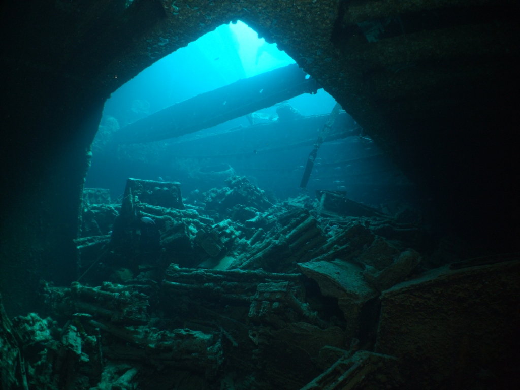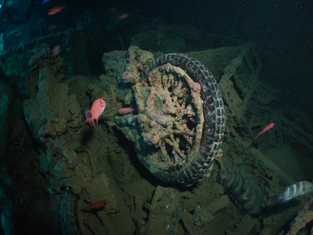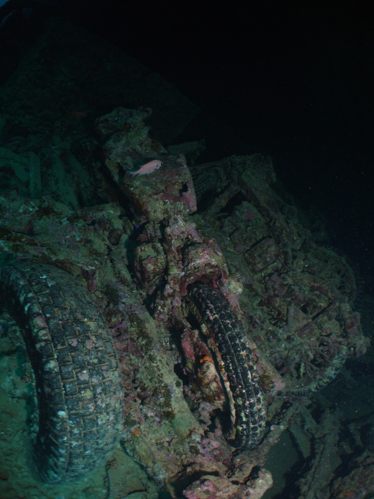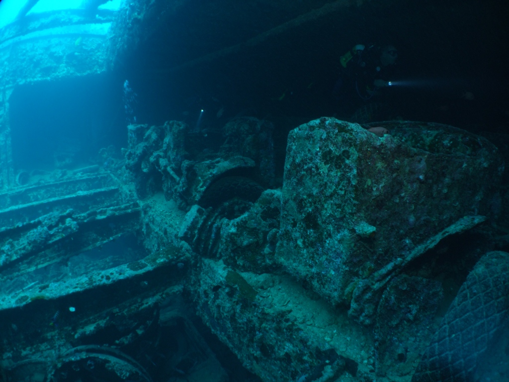 When exploring the wreck there are two dives you can do, an external and internal dive. Things to look out for are the deck guns, train wagons, ammunition, motorcycles, trucks and army boots.
