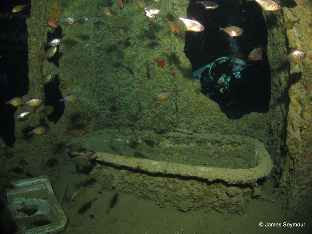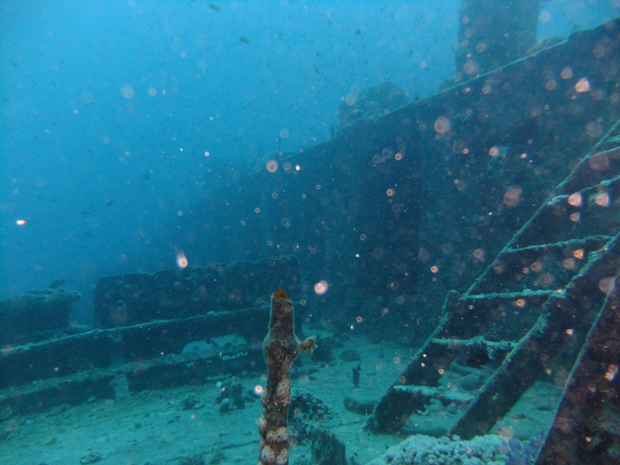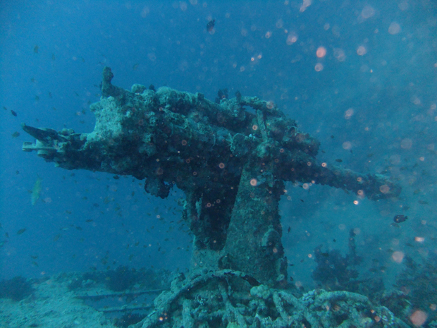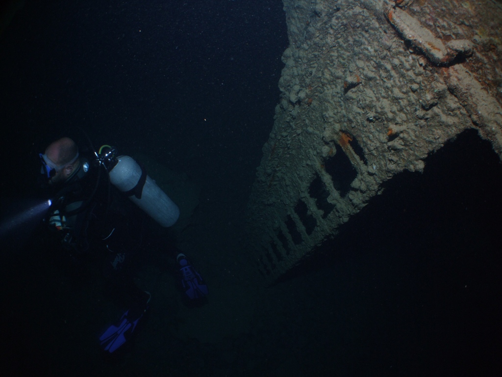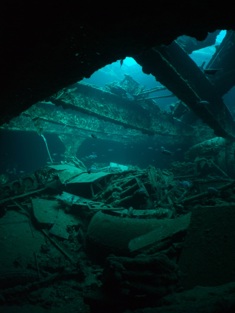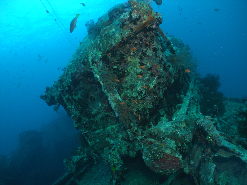 When exploring the wreck there are two dives you can do, an external and internal dive. Things to look out for are the deck guns, train wagons, ammunition, motorcycles, trucks and army boots.